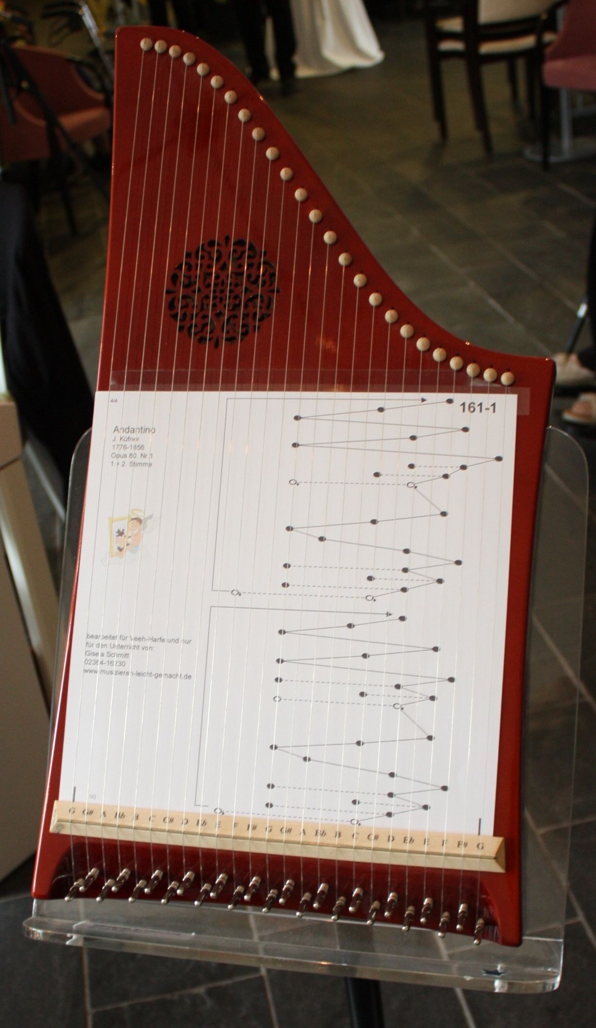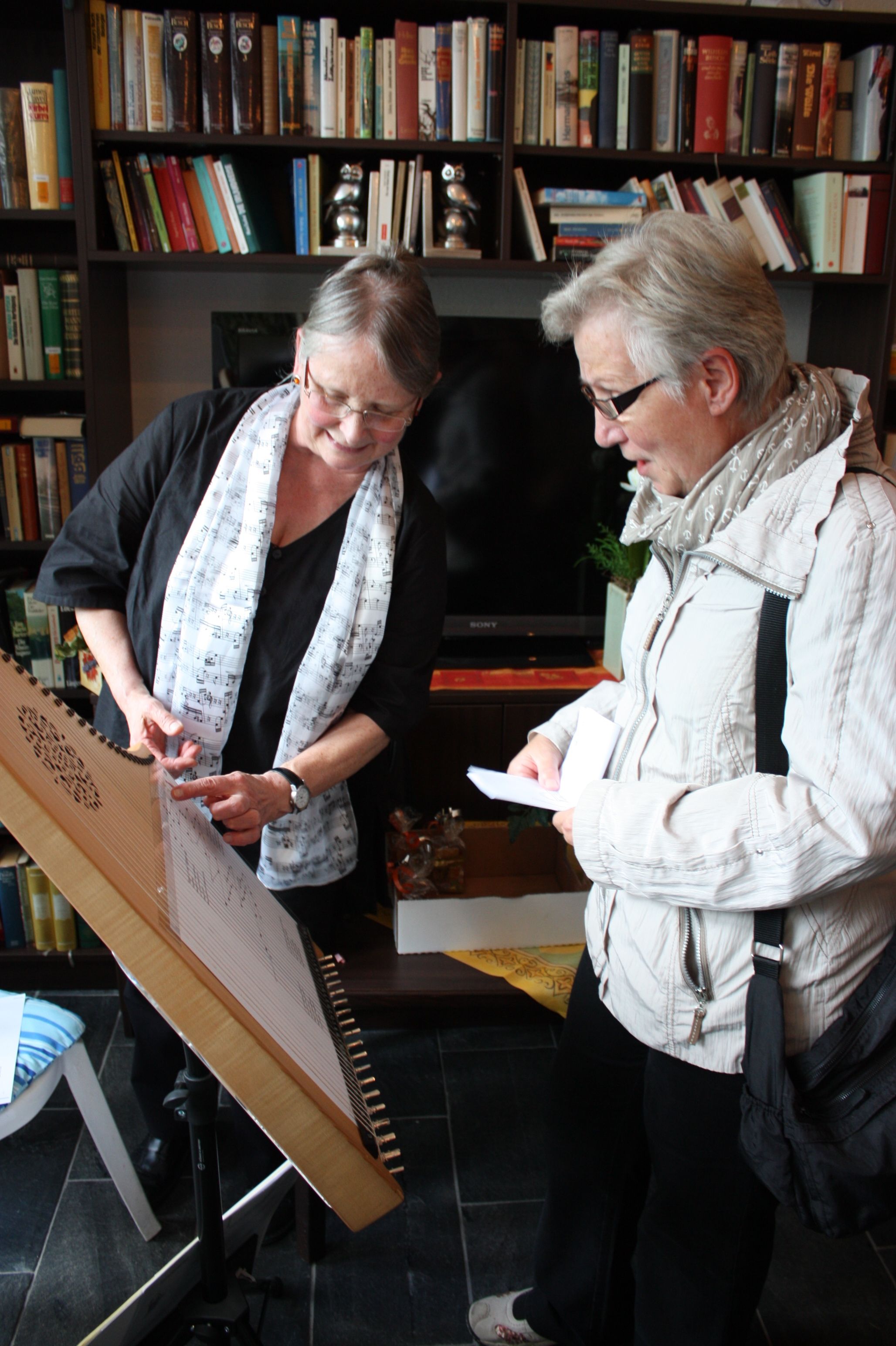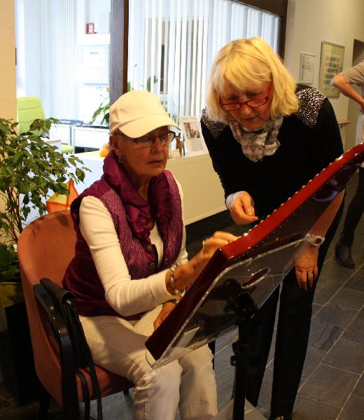 Die Veeh-Harfe lässt sich ohne Notenkenntnisse sehr einfach spielen und bereitet viel Freude - also ein Instrument für Jedermann. Deshalb haben viele Besucher die Gelegenheit genutzt, sich nach dem Konzert an den Instrumenten zu versuchen. Alle waren erstaunt darüber, was mit einer Harfe alles möglich ist.